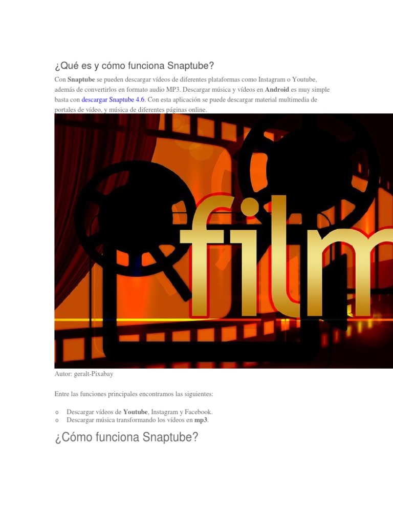 Potente aplicación para descargar vídeos y música gratis. En pocas palabras, snaptube es un descargador de video / música todo uno que soporta casi todas las plataformas de medios que. Esto te ayudará a descargar cualquier formato de vídeo o audio de youtube, facebook, twitter, instagram, dailymotion, vimeo y muchas más plataformas de redes sociales. La principal virtud de esta herramienta es la de poder bajar gratis vídeos y música del portal de vídeos online en streaming por excelencia. El procedimiento para descargar esta herramienta en tu teléfono es.